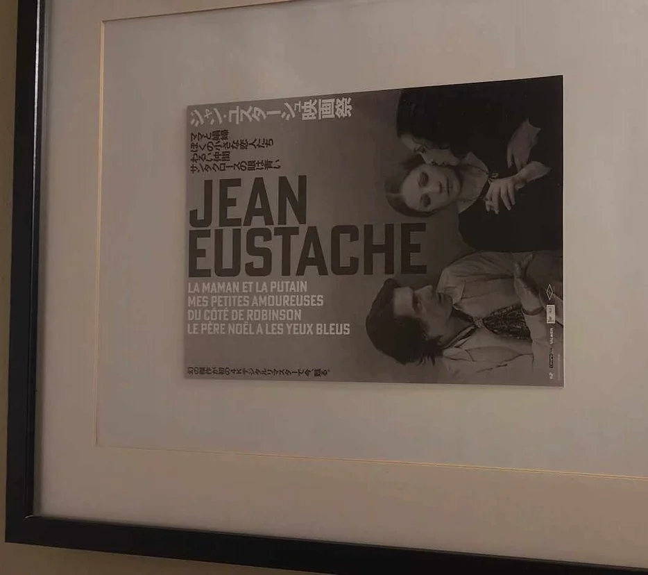 Back in December, only a few weeks of having left NYC and still feeling lots of raw confusion about the move and life changes, which was easiest channeled as anger towards myself for not having the answers I felt I owed myself, I ordered a collection of chirashi posters from Japan. They’re ostensibly flyers placed in cinema lobbies — some are vintage, others newer. I could fit two on the wall alongside my bed, and I could rotate them out, maybe once a month or so. Last night, I was watching deleted scenes from Wim Wenders’ The American Friend — coincidentally, this film was my first vintage poster I ever bought, a Belgian vintage French Grande that now sits folded in my room. There was a deleted scene with the director Jean Eustache in an acting role, only a few years prior to his death, and I realized that my chirashi poster for the restorations of Eustache’s films traveling through Japan has not left the frame closest to my bed since I put it up in December.